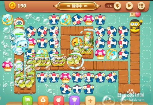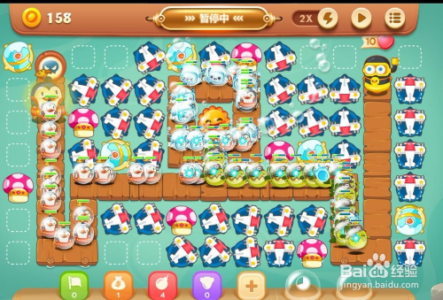 清理中心障碍物,奖励一个太阳花,然后在上方弥补一个雪球,一个玩具飞机,一个蘑菇。