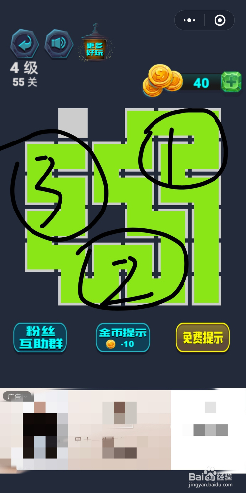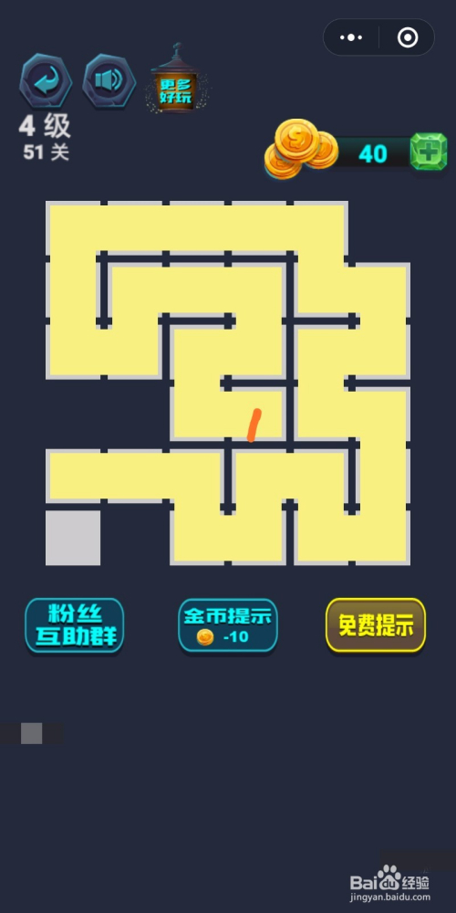 最强连连续第4级53关通关攻略:起点的上边是个角落要先走,然后要走阿谁圈再下去