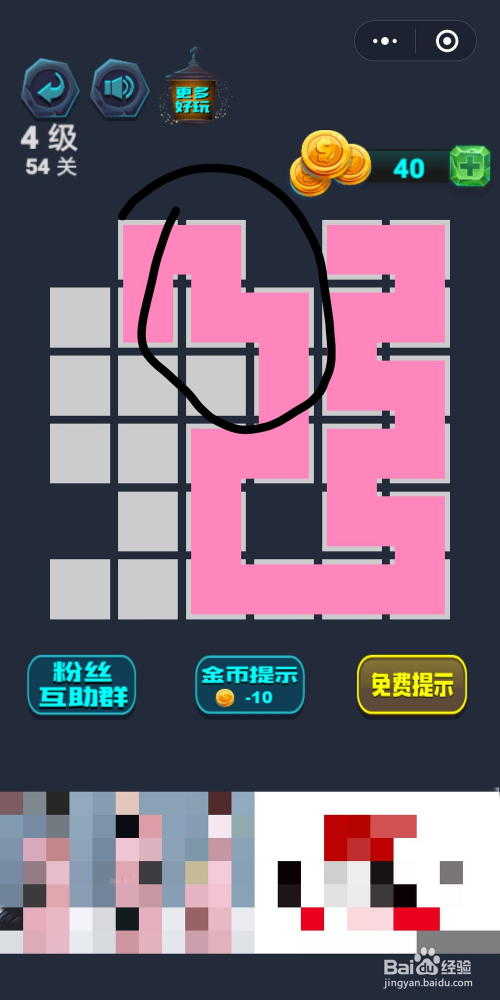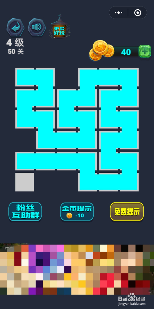 最强连连续第4级54关通关攻略:若是下来直接走圈的话会有几个格填不满,所以要先走上半部门最后走圈到终点