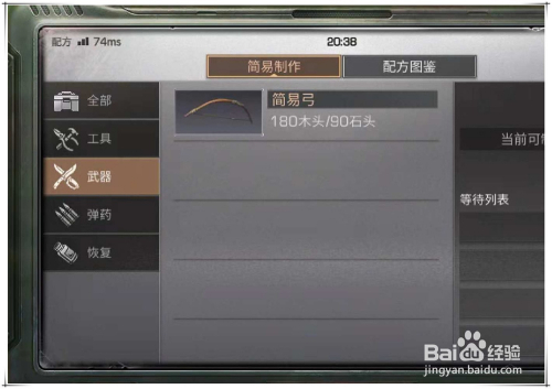 在弹出的配方窗口中,我们可以无须专门的建造机械,就能简单建造一些简略单纯的东西。