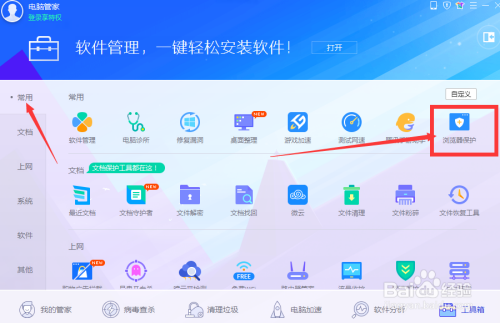 一般平安管家是(360卫士或者是腾讯管家的),这个时辰,首先你打开管家,在管家右下角处可以找到“东西箱”按键