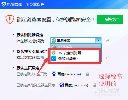 然后继续点击小锁,锁定习惯利用的浏览器,如许下次就不会经常变~