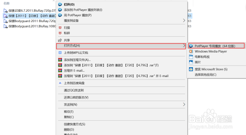 右键点击片子文件,鄙人拉列内外选择【打开体例】,然后选择【PotPlayer专用播放】,打开片子。