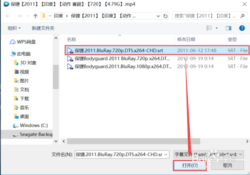 选择已经下载的字幕,点击【打开】。