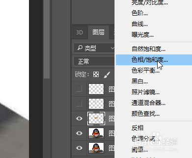 然后右键图层栏中选中色相饱和度