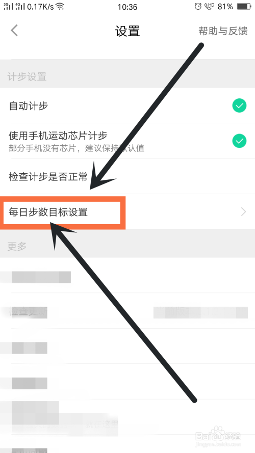在悦动圈软件设置中,在计步设置中点击每日步数设置,如图所示