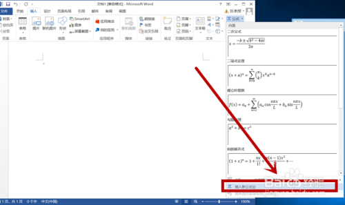鄙人拉菜单找到“插入新公式”单击