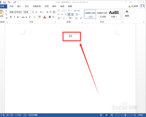 在呈现在编纂区的根式符号中,我们就可以对根号下面的内容和根式次数进行编纂,这里我们键入的是“3次根号5”