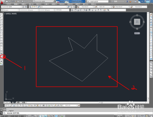 点击【直线东西】,在作图区域绘制出几个图案(如图所示)。点击左边东西栏【面域】号令后,框选绘制好的两个图案,并按下空格键。可以看到,颠末【面域】后的区域也能建立为二维闭合区域。