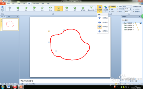 第六步:在动画窗格平分别选中各个动画结果,对照该曲线对象的走标的目的在“结果选项”中选择曲线擦除的偏向即可。