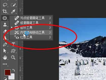 打开Photoshop软件,打开一张图片,然后再东西栏中选中内容感知移动东西