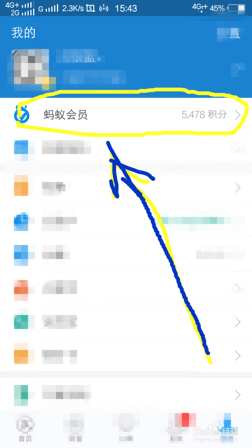 点击我的选项之后,在菜单里找到蚂蚁会员,点击蚂蚁会员。