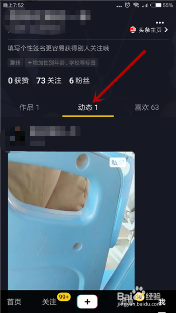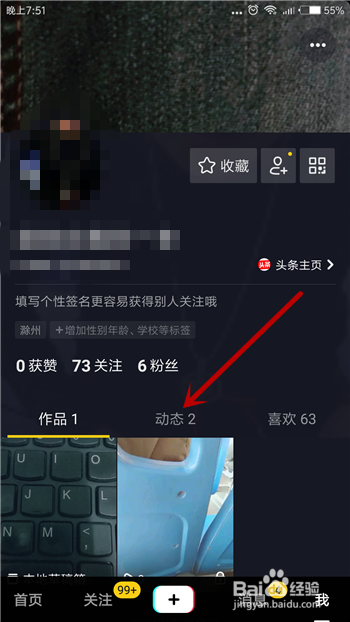 如许会打开抖音的小我本家儿页,然后在本家儿页中点击【动态】。