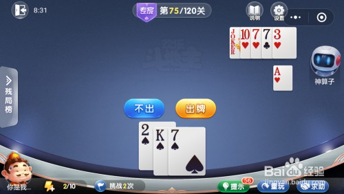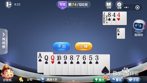 妙算子打出一对7,接着打出一张3,我打出一张K,接着打出一张7就过关了。