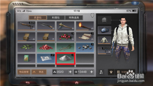 采办后打开背包,在背包中就可以看到适才采办的石灰。