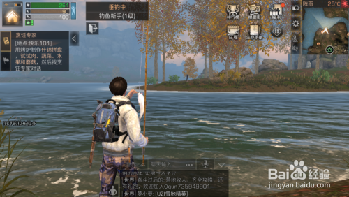 然后在背包里装备上鱼竿
