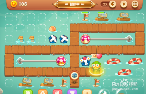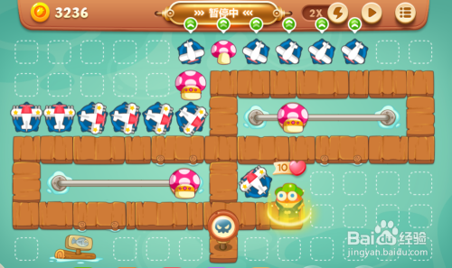 继续清理障碍物,在上方滑梯上放置一个蘑菇,然后弥补2个玩具飞机!