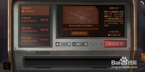 根本合当作 是新手默认的合当作方式,而中级、高级和特级合当作需要庄园达到3、5、7级才可以解锁,在左边的合当作体例中点击 根本合当作,根本合当作需要10配方