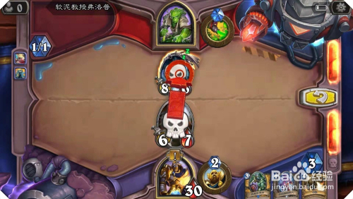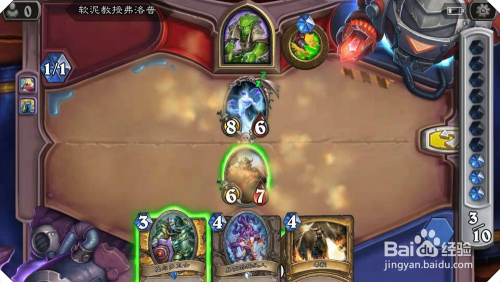 首先,利用已方场中的石牙野猪侍从,标的目的对面最右侧的1血恩佐斯子嗣(灭亡时,本方所有侍从加1攻加1血)倡议进犯,进行交换,对方侍从全数+1/1。