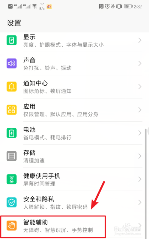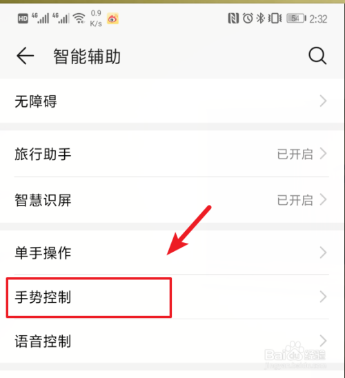 点击后,在手势节制中,可以看到智能辅助的选项,我们点击进入该选项。