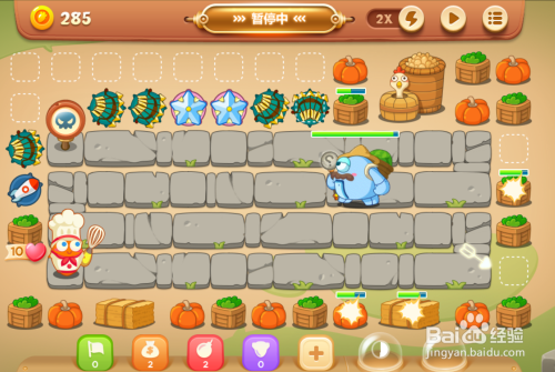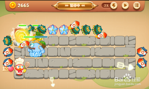 清理障碍物,出怪口右侧放置2个冰冻星!