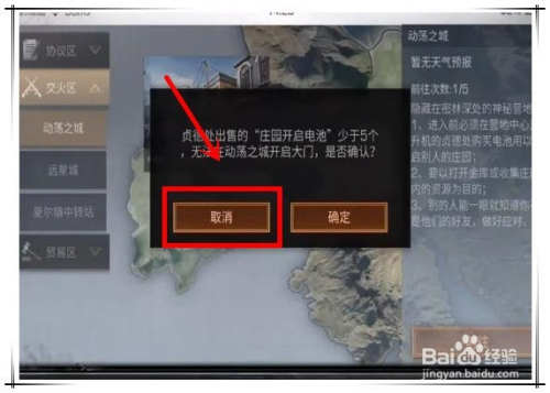 明日之后去别人家第三步:若是你还没有在贞德处采办有5个“庄园开启电池”,这时系统会弹出提醒,若是你是友爱拜候,可以去采办,不然若是是抄家,直接点否跳过。