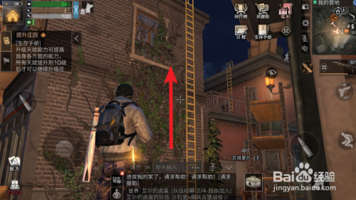我们按照小地图的指示来到如下图所示的处所。可以看到房子侧面有一个长长的楼梯,我们从这个楼梯登上房顶。