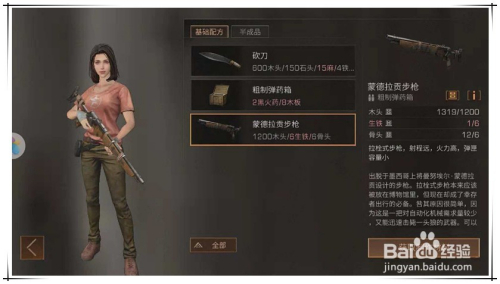 在根本配方栏目中,选择“蒙德拉贡步枪”,建造该枪需要1200木头,6个生铁,6根骨头。