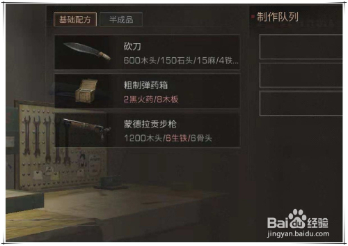 然后,再在根本配方界面中,选择“粗制弹药箱”进行建造。