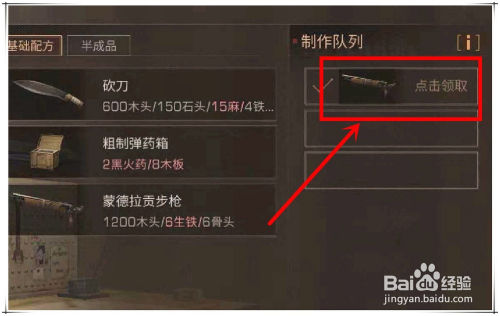点击建造,建造完当作后,点击领取进行装备。
