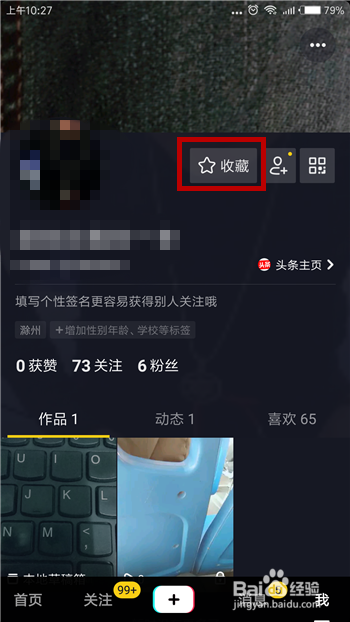 点击后会打开抖音的小我中间,找到【保藏】选项并点击,如图所示。