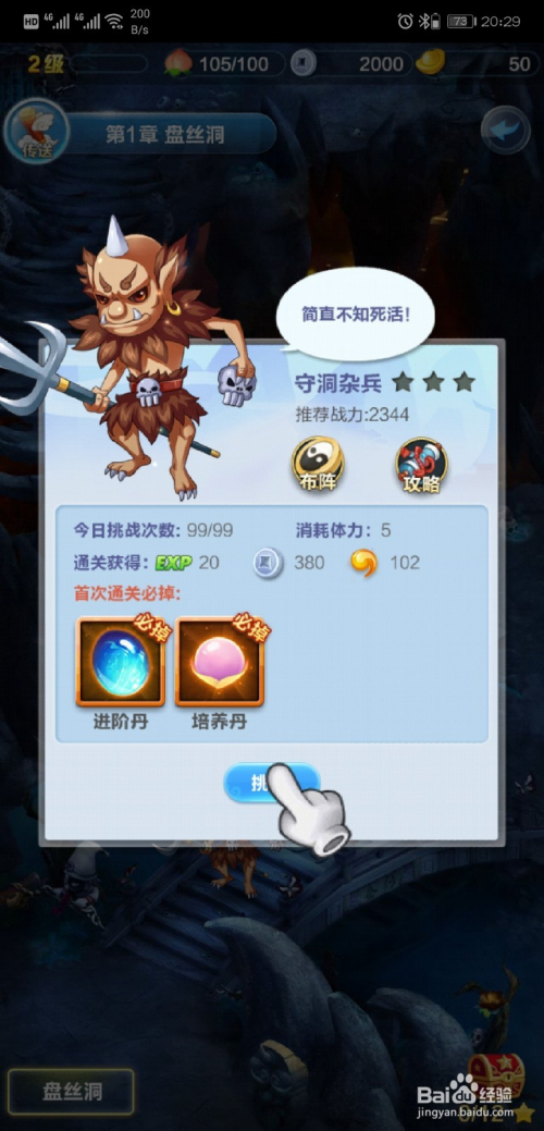 选择仇敌之后,玩家就能看到当前关卡仇敌可能的失落落的奖励。直接点击挑战就能进行战斗!