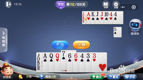 我打出一对Q,接着打出一张4就过关了。