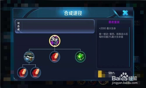 刘禅没有回血的技术,后期会受到血量的限制不克不及快速的去支援队友,最后一个装备上可以选择霸者重装,在支援队友的路上可以让本身回血,增添庇护队友的实力。