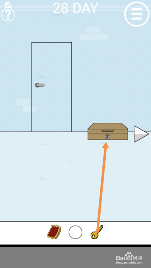 在左边房间里,将钥匙拖动到箱子上,然后点击箱子里的工具。