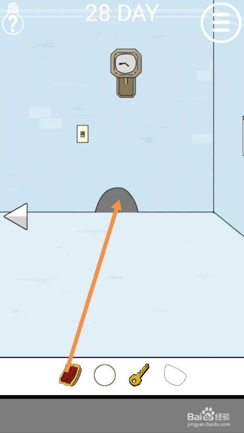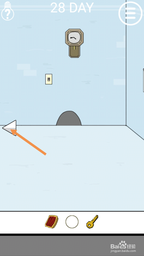 点击钥匙,然后点击标的目的左箭头,进入左边的房间。