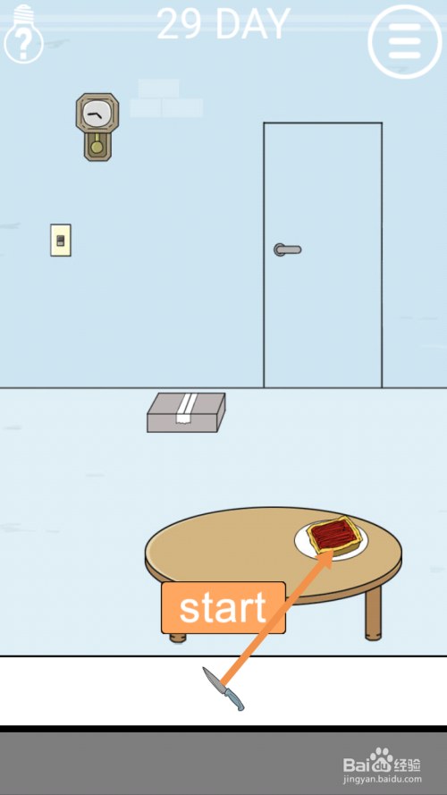 第29关点击刀,然后将刀拖动到辣条处,最后点击start就过关了。