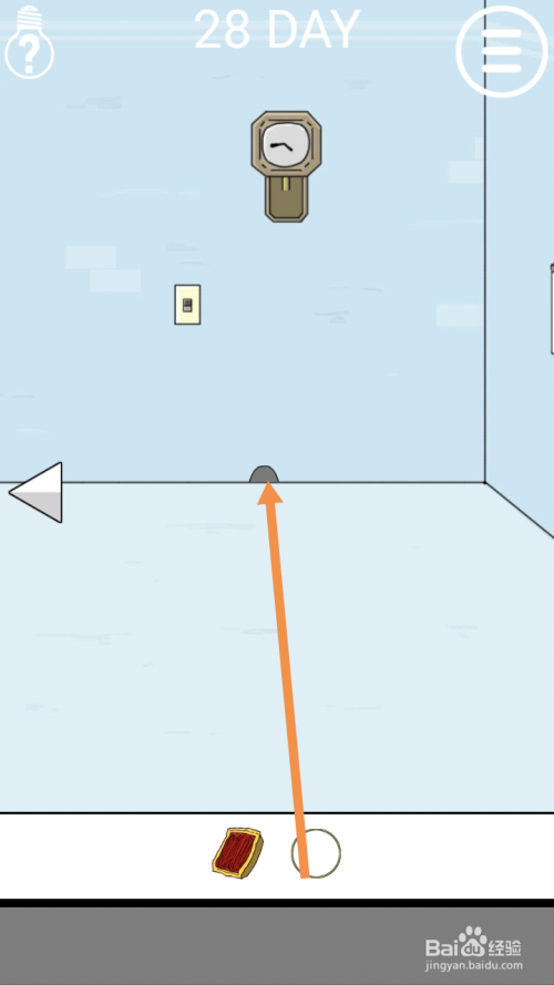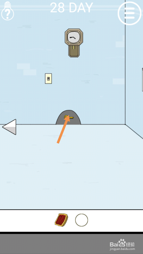 点击标的目的右箭头,进入右边的房间。在右边房间里,将辣条拖动到洞里。