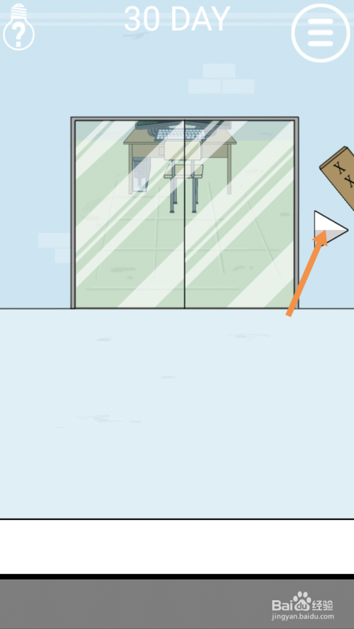 第30关点击右边牌子,然后点击标的目的右箭头到右边去。在右边点击门就过关了。