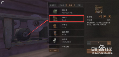 最后,我们在家具建造页面找到“书架柜 ”,点击一下书架柜,在点击右边的“建造 ”按钮就行了 。