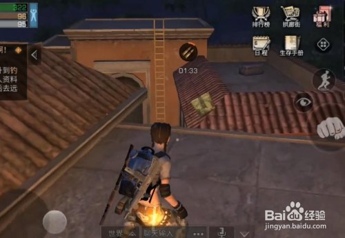 大师都知道弹药箱是可以踩上去的,我们用它做垫脚物,冲刺就可以跳到边上的屋顶