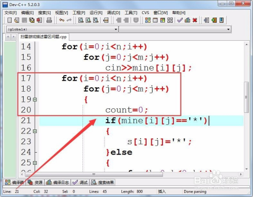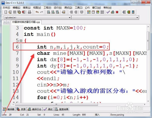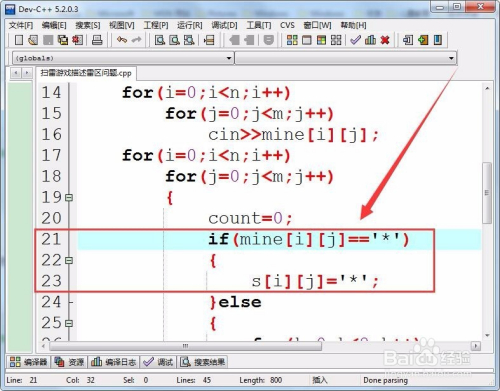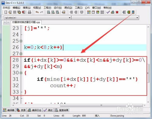 用if语句判定计较出的四周格子是否在雷区中,若是前提当作立且四周格子中是地雷,则计数值count累加1。
