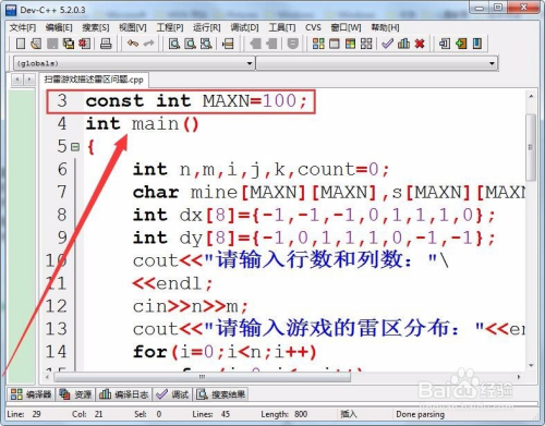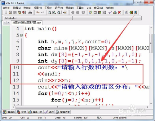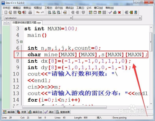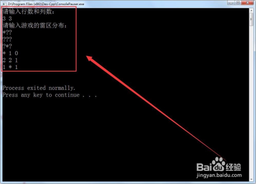 运行法式,输入雷区的行数和列数,以及整个雷区分布图,电脑就管帐算出响应雷区的描述图。