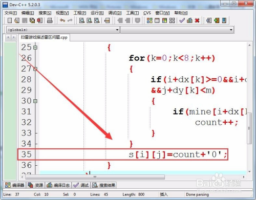 然后,将计较出的四周地雷数转化为字符,保留在字符数组s中。
