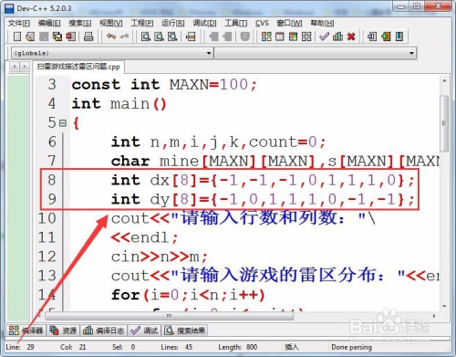 然后,界说两个整型一维数组,保留四周八个格子的相对坐标。