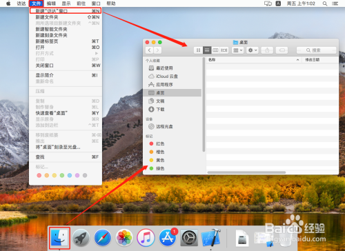 1)体例一:点击桌面顶部的【文件】->【新建“访达”窗口】,就可以打开文件夹浏览窗口