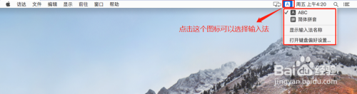 点击桌面右上角的A图标,鄙人拉中即可选择已安装的输入法