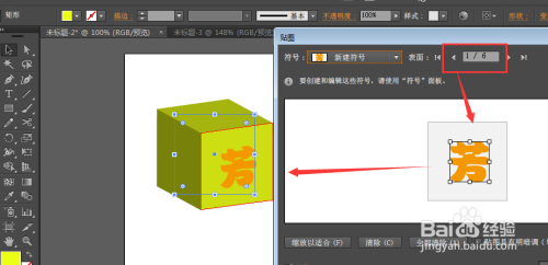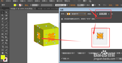 然后再打开窗口菜单中的符号菜单栏,将字图形直接拖拽到窗口中,在符号选项中设置名称,确定。