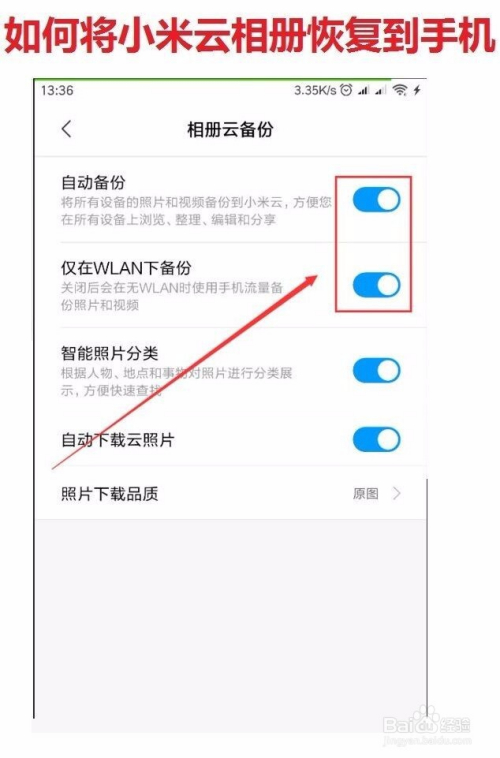 在【相册云备份】中依次打开【主动备份】【仅在WLAN下备份】,如许的话就能把手机里面的图片备份到云端了。