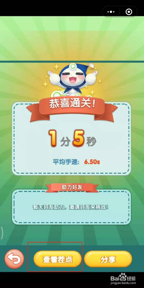 当作功通关后,可以看到本身的用时和连击数,点击 返回按钮
